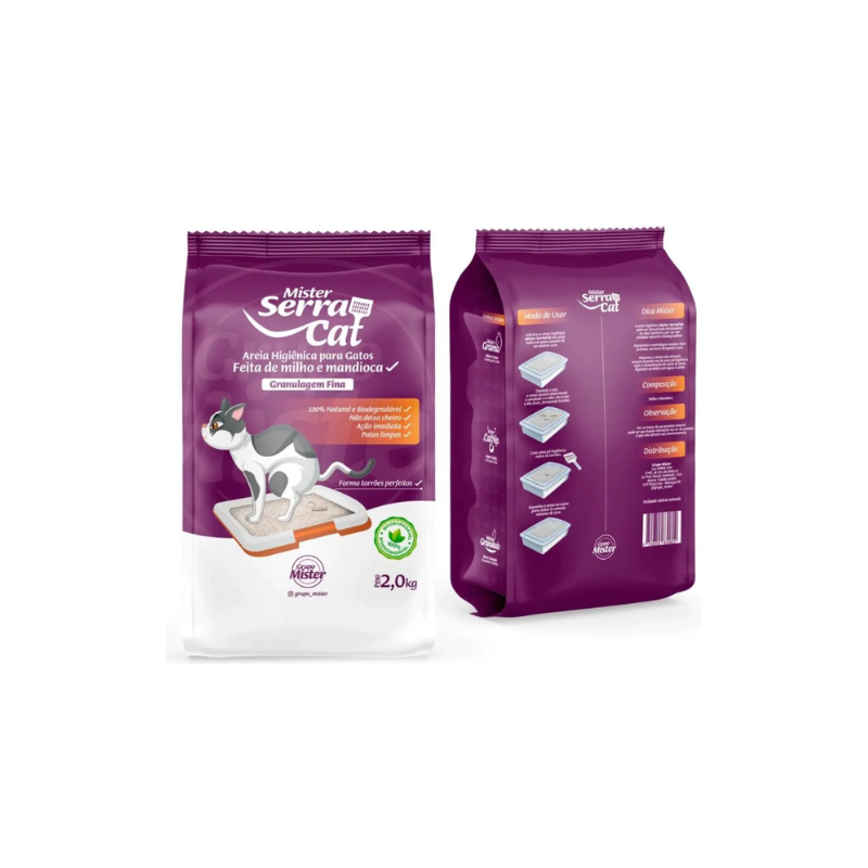 AREIA HIGIÊNICA BIODEGRADÁVEL FINA MISTER SERRA CAT 2KG