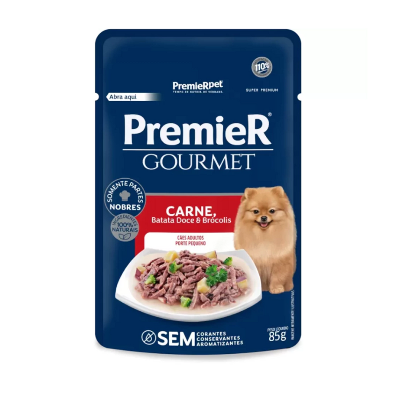 RAÇÃO ÚMIDA SACHÊ PREMIER GOURMET CÃES ADULTOS PEQ PORTE CARNE 85g
